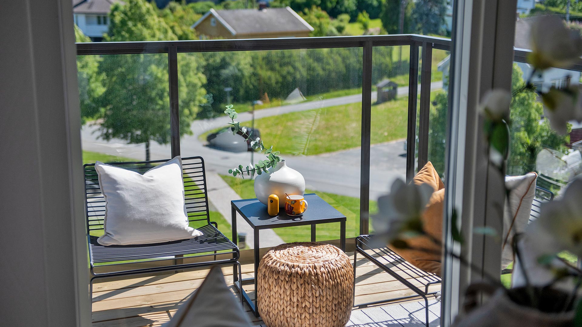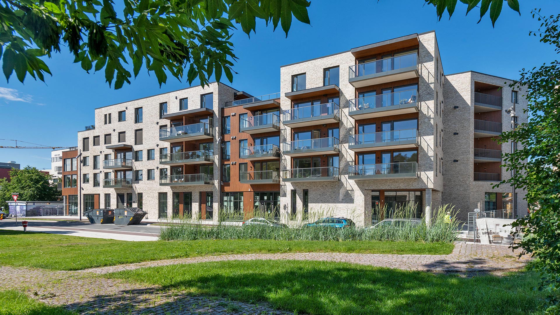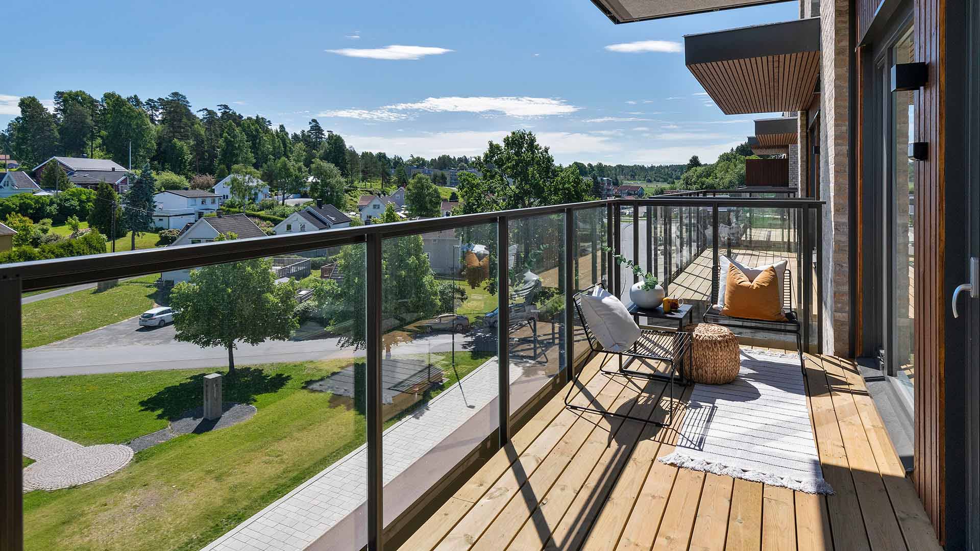 Alle leilighetene har balkong eller terrasse, samt tilgang til et hyggelig parkområde rett utenfor døren og garasjeanlegg i kjelleren.