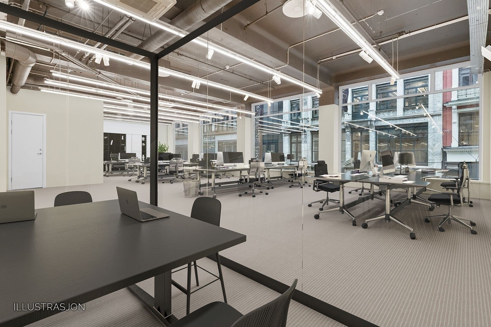 Det ledige lokalet i 2.etg passer ypperlig til kontor eller showroom, med store fine vindusflater som gir godt med lys og god profilering. Lokalet er strippet for innredning, som gir leietaker mulighet til å utforme lokalet etter eget ønske.